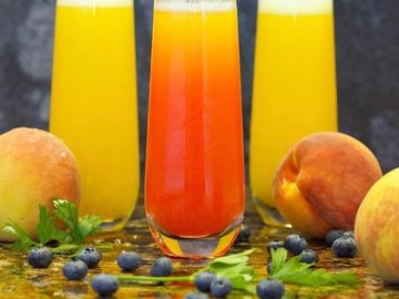 4 mimosas including all of our different flavors. Peach, pomegranate, mango and passionfruit